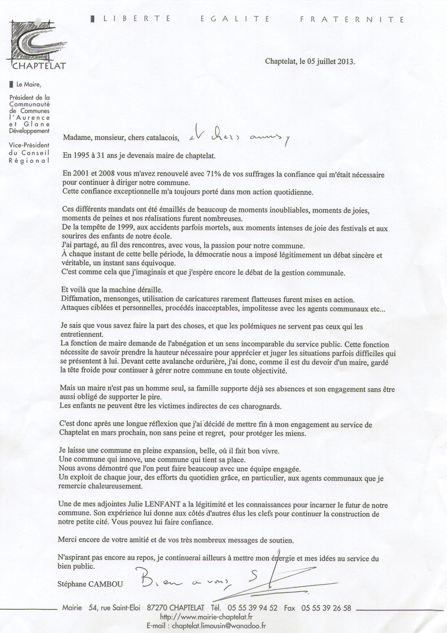 – Lettre de M le maire à ses administrés: